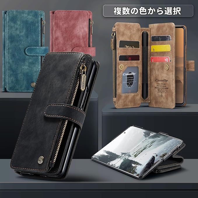 【優れた収納機能】 この商品は新デザインです、ケースの側面には5つのカードスロットと1つのフリーポケットがあり、ジッパー付きの収納スペースもあります。カードを持ち運びしやすいカードスロット設計のビジネスウォレットは、あなたの人生をより便利にします、運転免許証、交通カード、クレジットカード、ICカード、マンスリーパス、名刺などを収納できます