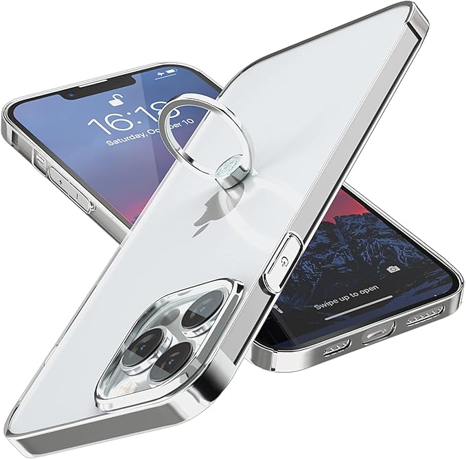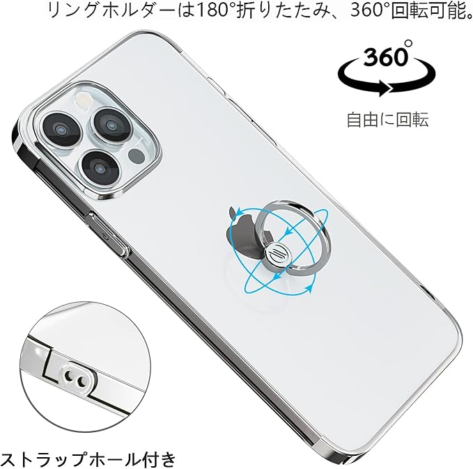 Compatible with リング ケース iPhone 13 Pro Max ケース リング付き スタンド機能 メッキ加工 透明 PC 落下防止 薄型 軽量 一体型 おしゃれ 全面保護カバー 13ProMax リング ケース [6.7インチ] (シルバー)