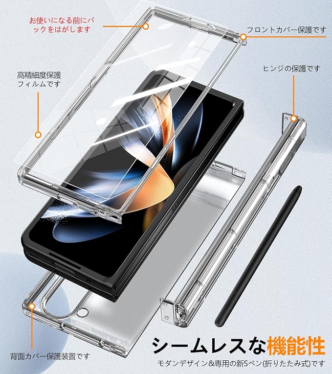 Galaxy Z Fold 7 用 ケース ガラスフィルム 一体型 sペン 付き Sペン内蔵収納 薄型 ヒンジ保護 軽量 耐衝撃 米軍MIL規格取得 ワイヤレス充電対応 おしゃれ 指紋防止 防塵 傷防止 人気 折り畳み ギャラクシー Z フォールド7 5G 用 携帯カバー 透明 MD-KMBC-04-05