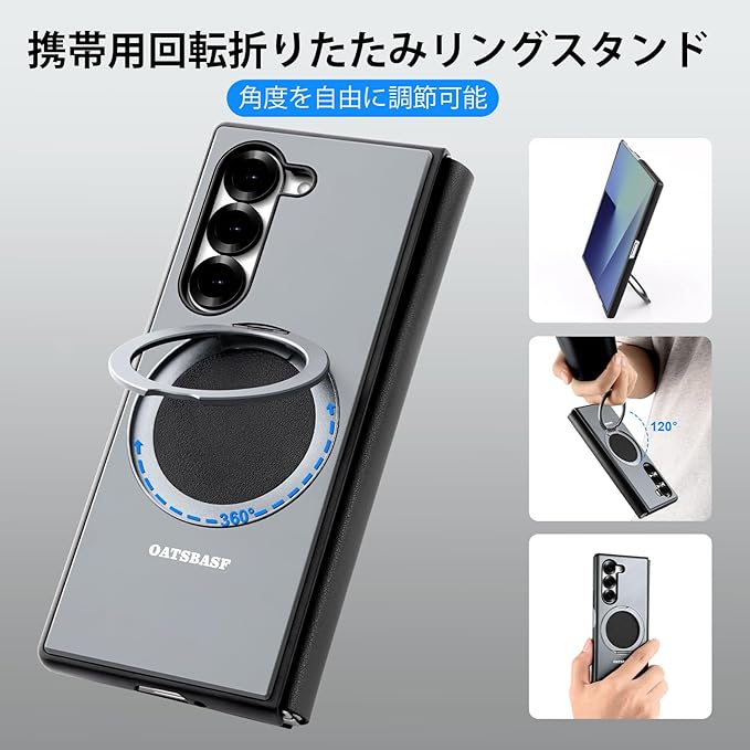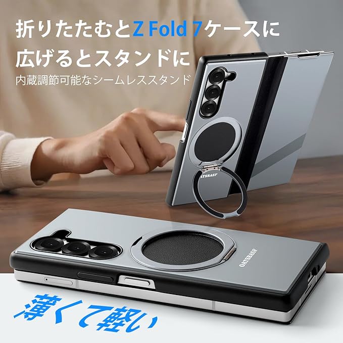 【マグネット式360度回転スタンド】: Samsung Galaxy Z Fold 7マグネット式スタンド付きケースはマグネット式ホルダー、マグネット式ワイヤレス充電器、その他のマグネット式アクセサリーと互換性のあるマグネット式リングスタンドを備えており、運転中やその他の状況でも使用できます。