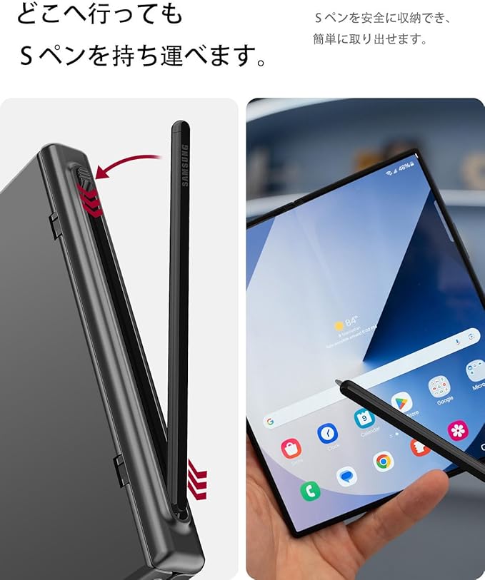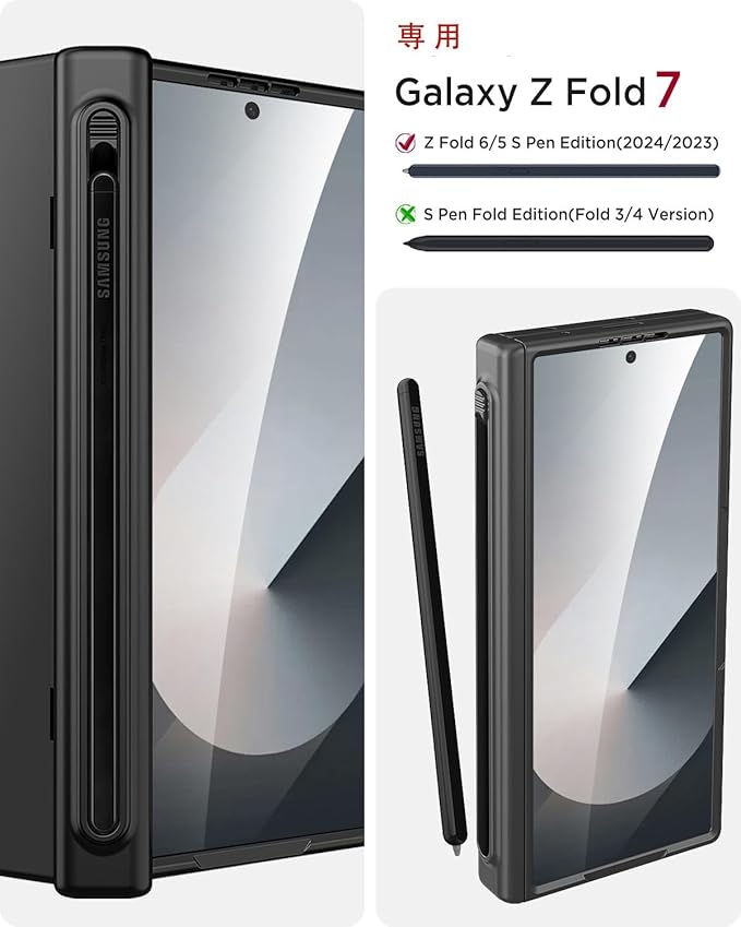 【対応機種】Samsung Galaxy Z Fold7 (2025) 専用 ,ワイヤレス充電に対応しています.※ご注文の際に、モデル番号を対照し、確認をお願いします。(ペンホルダーは Z Fold 5/6 の S Pen Fold Edition にのみ適合し、ペンが同梱されています。)