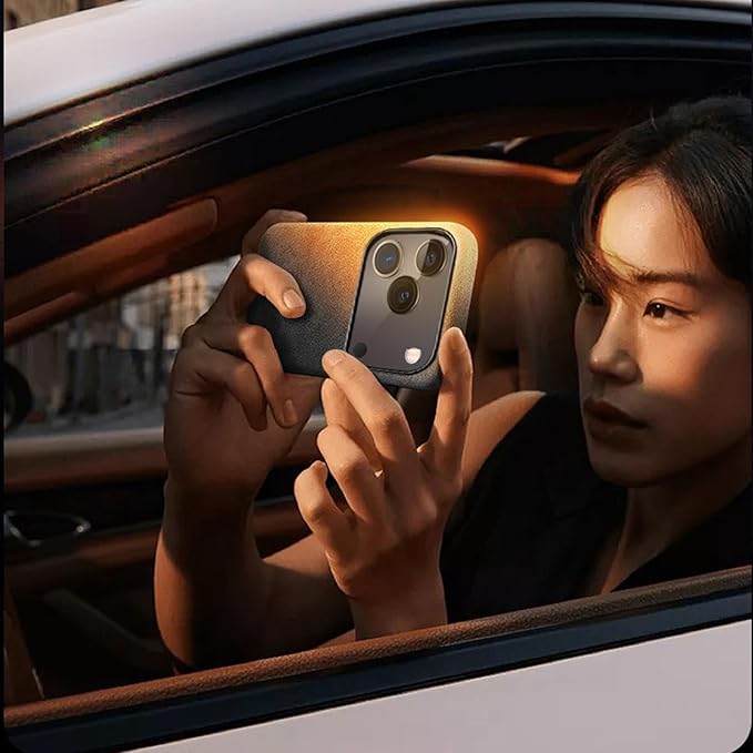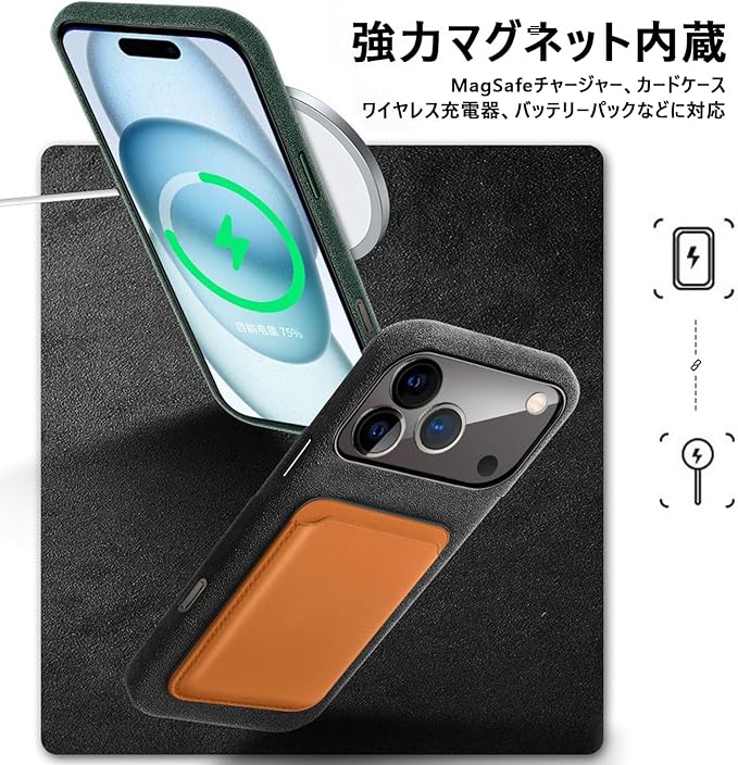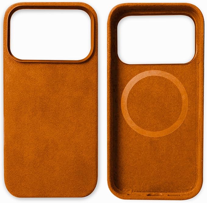 iPhone 17 Pro Max 用 Alcantara(アルカンターラ)ケース MagSafe対応 超薄型 軽量 メタルボタン 耐衝撃 防汚 滑り止め、オレンジ