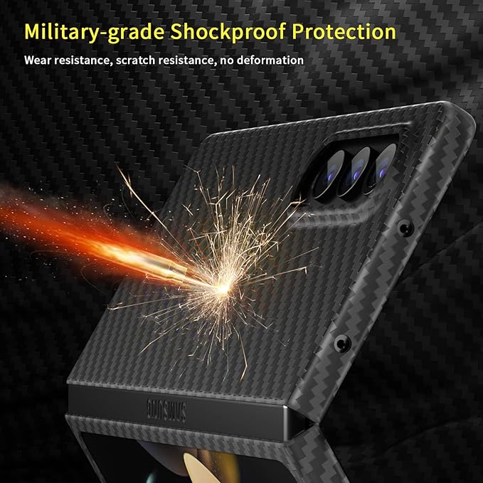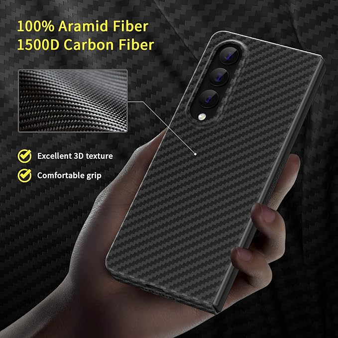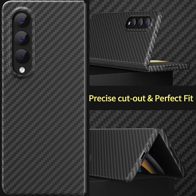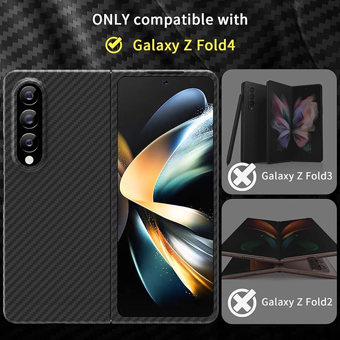 Galaxy Z Fold 4対応アラミド繊維ケース memumi 0.5mm極薄 耐衝撃 全面保護カバー ワイヤレス充電対応 ミニマリスト シンプル(ブラック)