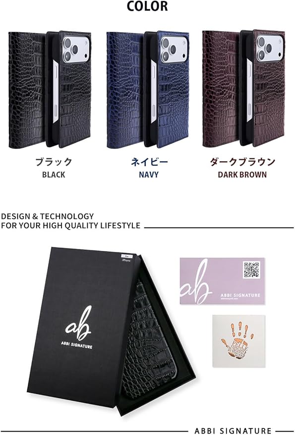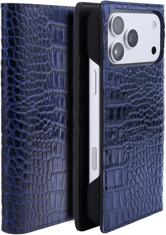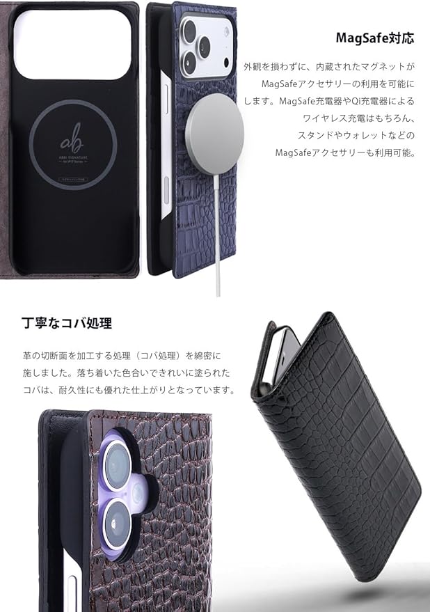 ABBI SIGNATURE iPhone 17 Pro Max 用 ケース 手帳型 日本製 イタリアン本革 LIPARI [ MagSafe対応 クロコ型押し ベジタブルタンニンレザー 革職人ハンドメイド ワイヤレス充電対応 ] ABS27767i17PM ネイビー 【正規品】