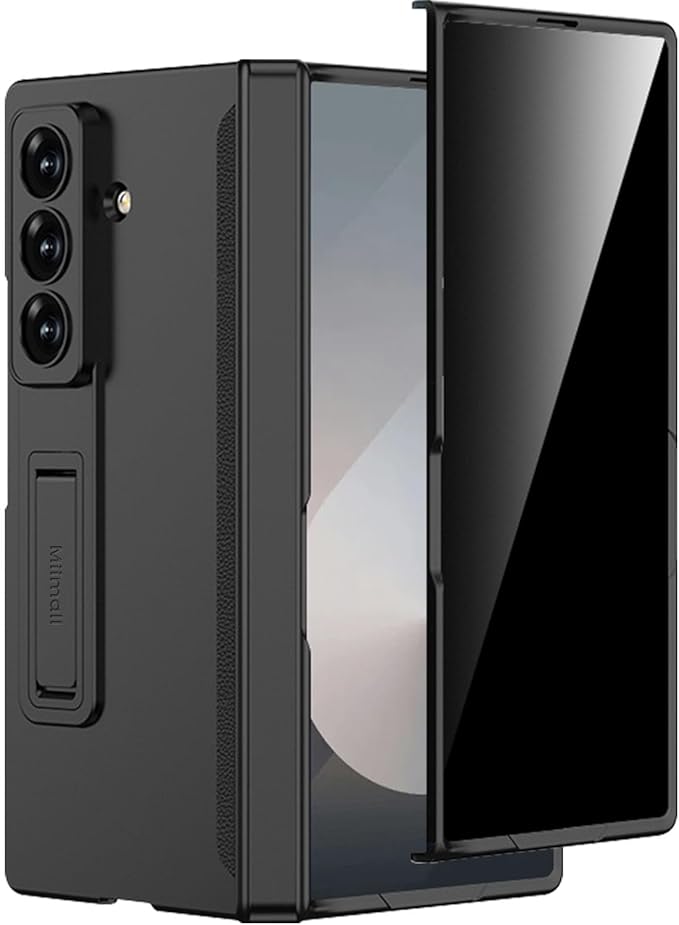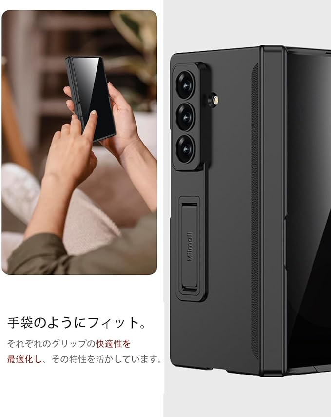 Miimall 対応 Galaxy Z Fold 7 ケース 防窺フィルム付き スタンド機能 磁気ヒンジ保護 耐衝撃 マット 軍規格頑丈性能 全面保護 滑り止め付きスマホカバー ギャラクシー Z フォールド7 (ブラック)