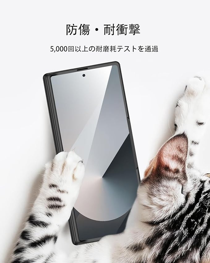 【全身保護・優れた防窺機能】対応 Samsung Galaxy Fold 7 専用のフィルム一体型ケースで、全面保護カバーが機器を守ります。画面とカメラ周囲の突起した防護縁が、落下や擦れによる傷を効果的に防止。薄型設計ながら、本体とカメラを全方位からしっかり保護します。高性能防窺フィルム搭載 卓越した視線遮蔽で他人ののぞき見を防ぎ、プライバシーを守る。オフィスや外出先でも安心して使える。