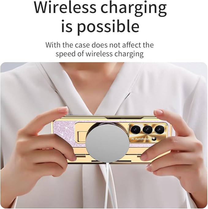 この手帳型ケースはGalaxy Z Fold7専用に設計され、360度の全方位保護を提供します。超薄軽量構造で装着感を最小限に抑え、折り畳み電話に完全に適合します。独立したヒンジ保護カバーがヒンジ部を強化し、3D電鍍加工されたフレームと隠しスタンドが豪華な金属効果と鏡面光沢を実現。背面とヒンジカバー非電鍍部分の閃光素材が光の下で宝石のような輝きを放ちます。金属カメラ保護蓋と一体型強化ガラスフィルムで画面とレンズを守り、隠し折り畳みスタンドはビデオ鑑賞に便利です。ワイヤレス充電対応で取り付けもシンプル、品質保証付きです。