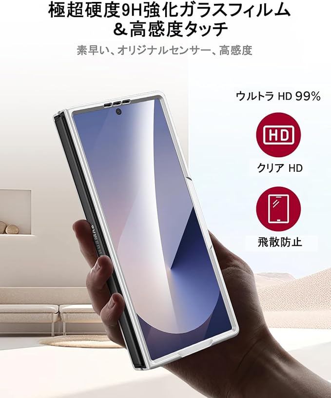 【保護フィルム付き・完全保護】このスリムフォールド7ケースは高精細、高透明の強化フィルムが付いており、携帯電話の美しい画質に影響を与えません。特殊な飛散防止設計により、万一割れてしまった際にも飛散することなく、高い安全性を確保します。硬質なPC素材を採用し、衝撃耐性、傷防止、落下防止などの性能に優れています。特殊なマット仕上げの素材設計により、日常使用時の滑りや指紋の付着を効果的に防止します。