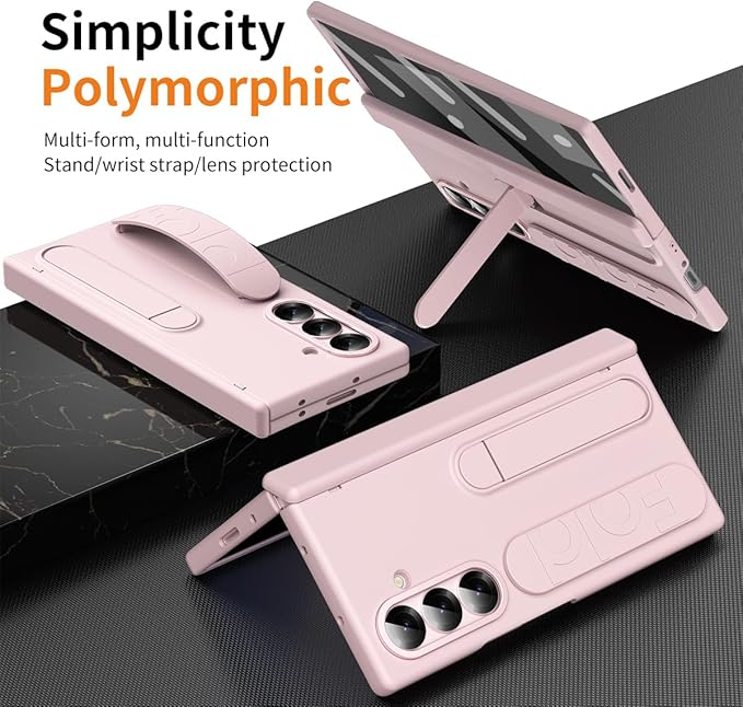 【Galaxy Z Fold7専用】折り畳みケース マットの表面 強化ガラス製外画面保護フィルム シリコングリップ 隠蔽式マルチスタンド機能 ヒンジ保護 金属カメラガード ワイヤレス充電対応 全包囲PC マルチスタンド付属 人気 衝撃吸収 多層構造 指紋防止 軽量 薄型 携帯 手帳型 おしゃれ Beautycatchear - ピンク