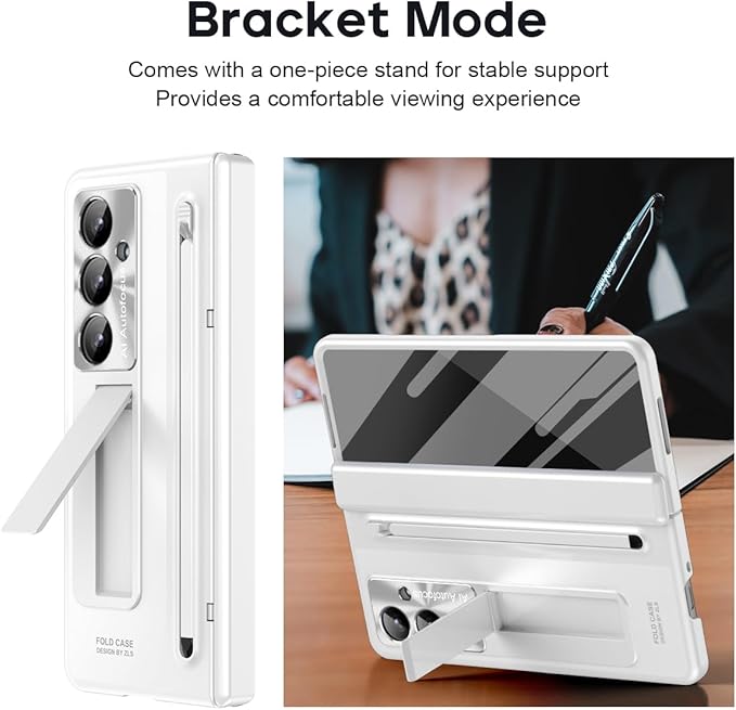 【Galaxy Z Fold7専用】多機能統合型 ケース 全面保護+強化ガラスフィルム+きんぞくラッカ+ペン 隠しスタンド機能 ヒンジ保護 ワイヤレス充電サポート 手帳型 携帯カバー 薄型 軽量 キラキラ 衝撃吸収 指紋防止 面白い 個性 二層構造 Beautycatcher - 白