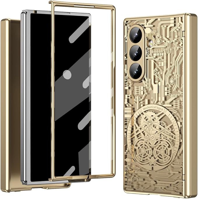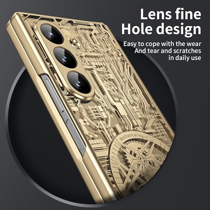 Galaxy Z Fold7専用透明デザイン 電鍍フレームケース 360度防護 メカニカル回路図模様 超薄軽量折りたたみ 鋼化ガラス一体型 ワイヤレス充電対応 ヒンジ保護 カバー 手帳型 キラキラ おしゃれ フリップ かわいい 衝撃吸収 手帳型 折り畳み 人気 滑り防止 面白い Beautycatcher - 金