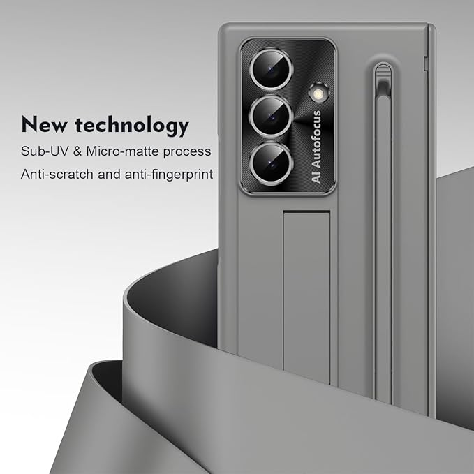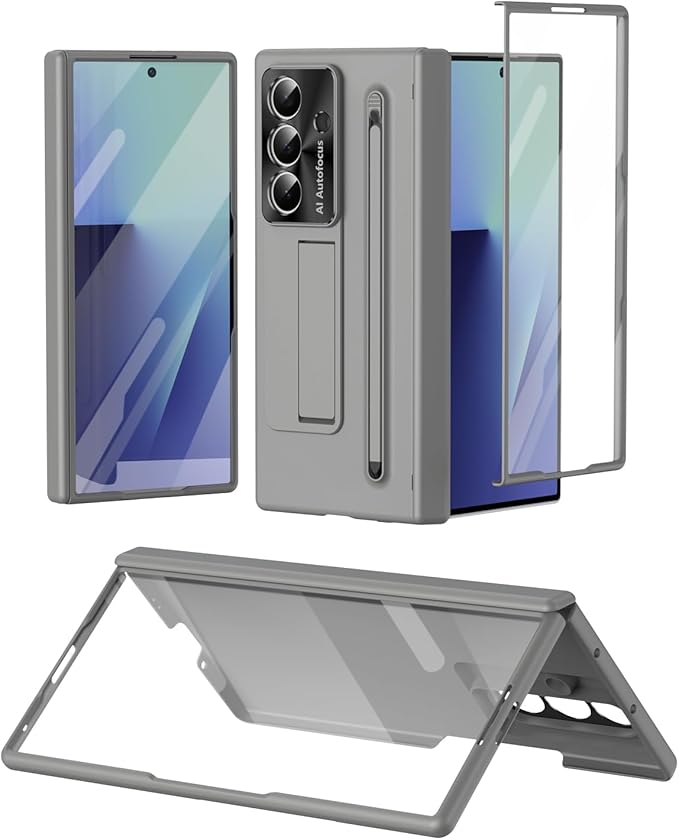 Galaxy Z Fold7用 全包囲保護 手帳型ケース ヒンジカバー付き 強化ガラスフィルム スタイラスペン収納 金属カメラガード マットの表面 折り畳み ワイヤレス充電対応 軽量 薄型 指紋防止 おしゃれ 人気 可愛い 面白い衝撃吸収 多層構造 Beautycatchear - グレー