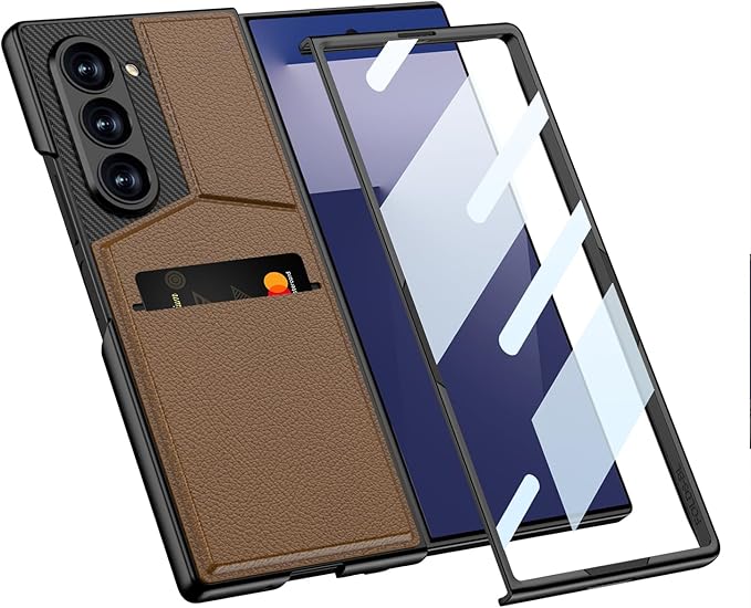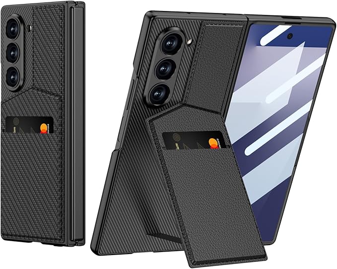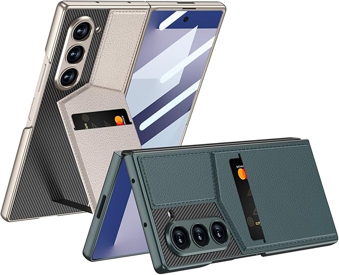 本製品はGalaxy Z Fold7の機構美を革新する次世代ビジネスプロテクション。立体カーボン調デザインと金属質感フレームが品格を演出し、磁気式多機能カードホルダーが利便性を進化。強化ガラス内蔵設計と微隆起保護リップが精密部品を全天候防御する一方、極薄複合構造が端末の本質的な美しさを引き出します。