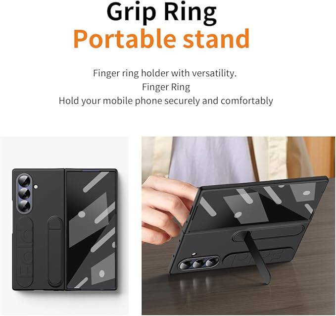 Galaxy Z Fold7のために開発された革新型手帳カバー。リストストラップ・隠蔽式スタンド・金属カメラリングを融合し、「落下防止」「ハンズフリー機能」「画面/カメラ保護」を同時解決。一体化外画面ガラスフィルムで追加コストを削減し、特殊肌触りコーティングが高級感とグリップ性を両立。軽量設計でありながら厳格な衝撃テストをクリアした多機能プロテクターが、ビジネスユースから日常生活までスマートフォンの価値を長期守ります。