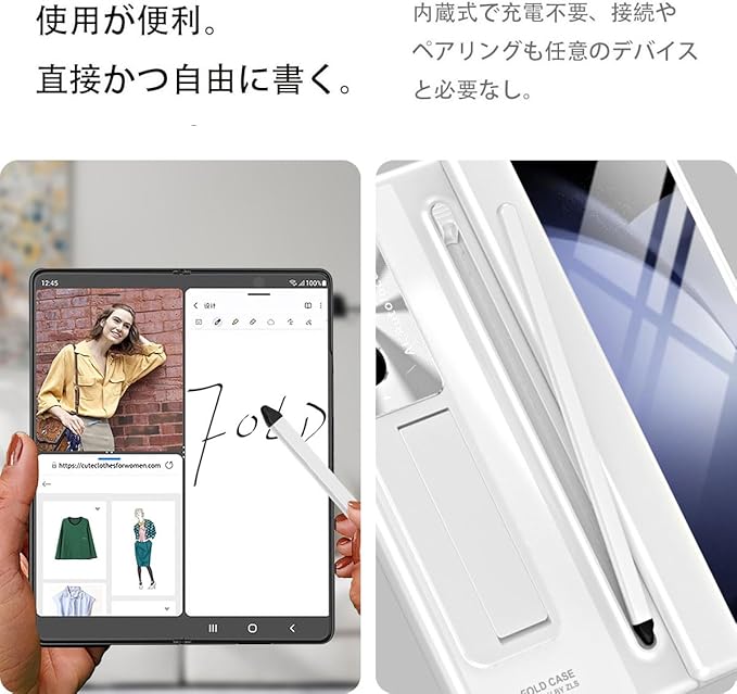 【ペン贈り|ペン内蔵収納】対応Galaxy Z Fold 7 ケース S ペンホルダー,側面カバーにはペン収納スロットがデザインされており、ペンが付属しています。タッチペンを使用して画面上で作業したり、テキストを入力したり、使用しないときは収納スロットに挿入したりできます。 統合されたペンスロットデザイン。[押して排出] スタイラス,操作が簡単で便利です。