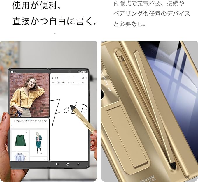 【ペン贈り|ペン内蔵収納】対応Galaxy Z Fold 7 ケース S ペンホルダー,側面カバーにはペン収納スロットがデザインされており、ペンが付属しています。タッチペンを使用して画面上で作業したり、テキストを入力したり、使用しないときは収納スロットに挿入したりできます。 統合されたペンスロットデザイン。[押して排出] スタイラス,操作が簡単で便利です。