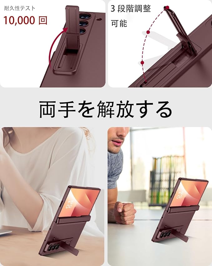 【マグネットで安定・使いやすさ】対応galaxy z フォールド7 ケース。強力なマグネットを搭載し、ヒンジ部分にしっかり吸着。外れにくく、開閉がスムーズで折りたたみ機能に影響を与えません。スタンド付きで角度調整が簡単で、さまざまなシーンで快適に使用できます。