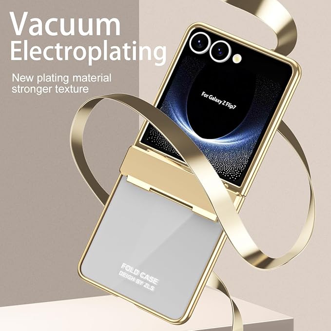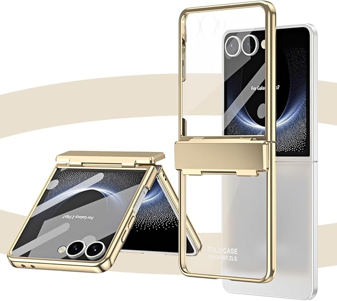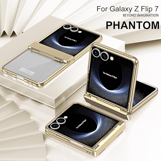 【Galaxy Z Flip7専用】手帳型ケース 透明デザイン 電鍍フレーム 鋼化ガラス一体型 360度防護 超薄軽量折りたたみ ワイヤレス充電対応 ヒンジ保護 カバー キラキラ おしゃれ 衝撃吸収 折り畳み 人気 滑り防止 面白い フリップ かわいい Beautycatcher - 金