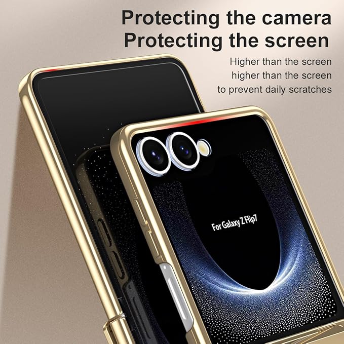 折りたたみスマートフォンの可能性を最大限に引き出す次世代ハイブリッドプロテクター。透過率98%のクリスタルクリア素材が端末の美観を損なわず、電鍍メタルフレームが高級感を演出。多層衝撃吸収構造と独立ヒンジガードが、ビジネスシーンから日常生活までGalaxy Z Flip7を洗練されたスタイルで全天候型保護。