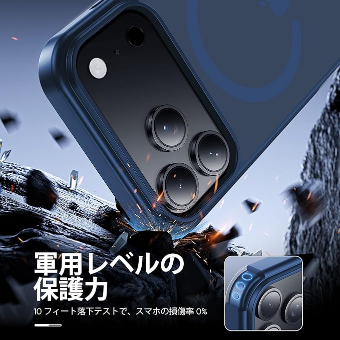 いくら気をつけていても落とす時がある!でも大丈夫!2Mの高さから26回以上落としても本体は綺麗に無傷!背面「カメラエアバッグ」耐衝撃技術も備えています。耐震性の高いTPUバンパーと頑丈なPC背面と組み合わせた二重構造で、非常に高い耐衝撃性を誇り、アイフォン17ProMax を全方位からしっかりと守ります。