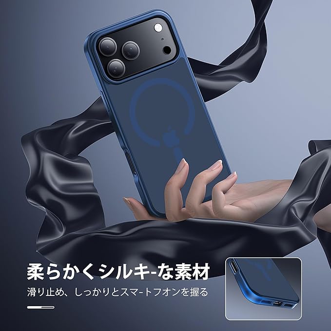 【米軍規格・MagSafe対応】Gtsoho iPhone 17 Pro Max 用 ケース 半透明 マグネット搭載 ワイヤレス充電 耐衝撃 耐久性 全面保護 黄ばみなし ストラップホール付き イフォン 用 カバー マグセーフ対応 ネイビー