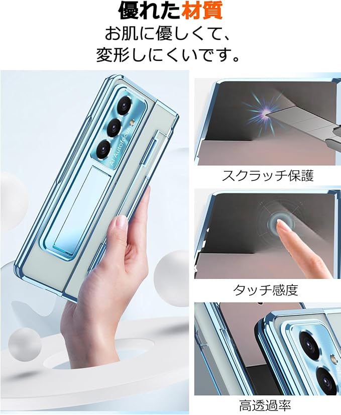 NINKI適応Galaxy Z fold 7ケース 【 SC-56F | SCG34 】 ペン付き penホルダー キックスタンド フィルム一体型 クリア背面 メッキ加工 PC製 おしゃれ 折り畳み式 サムスン ギャラクシー フォールド 7 5g スマホ ケース(ブルー)