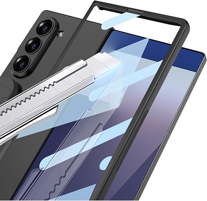 【強化ガラス一体型】【画面全面保護】外画面に高強度強化ガラスプロテクターを完全内蔵。落下衝撃吸収層と耐スクラッチ加工が組み合わさり、日常使用におけるあらゆるリスクから画面を多段階防御。