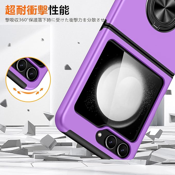 Galaxy Z Fold7 用 ケース リング付き 耐衝撃 内蔵スタンド付き 衝撃吸収 tpu 薄型 擦り傷防止 シリコン スタンド機能 車載ホルダー対応 二重構造 PC バンパー ギャラクシー Z フォールド7 5G 用 スマホケース 全面保護 360 回転 おしゃれ 人気 携帯カバー 紫 Q44-YSZH-Fold7-ZI