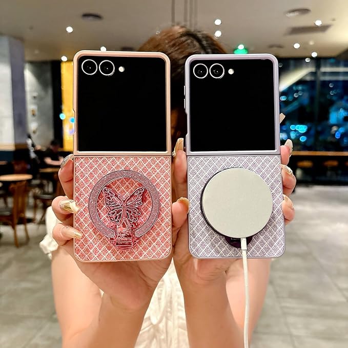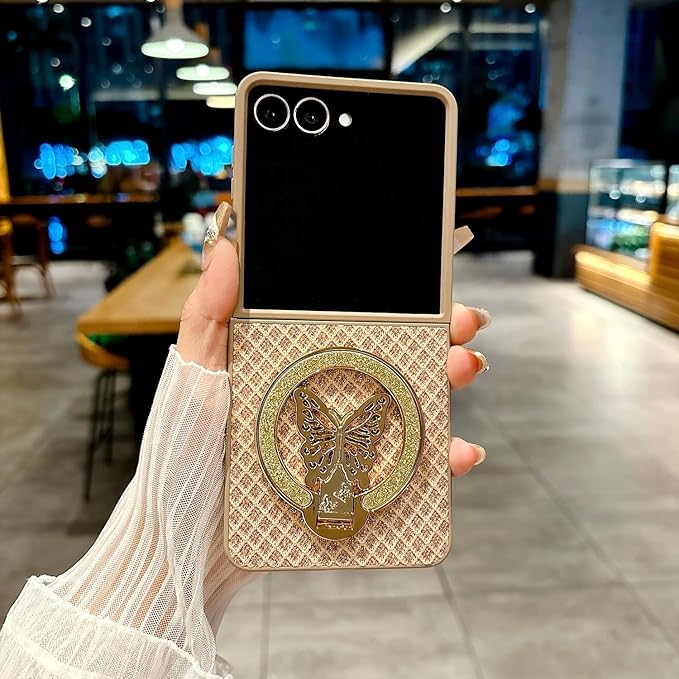 Galaxy Z Flip7専用の手帳型ケースが女性向けのファッション性と機能性を融合。内層PC素材と外層キラキラ装飾層の複合構造で衝撃耐性を確保しつつ、独自開発の菱形パターンが光の反射で豪華な輝きを演出。金属塗装フレームの微粒子マット加工が滑りにくい快適グリップを実現。カメラ/画面周辺の微隆起構造で落下衝撃を低減。360度自由調節可能な磁気回転スタンドが多角度視聴を支援。ワイヤレス充電互換性を保持し、独立ボタン設計で操作性を最適化。