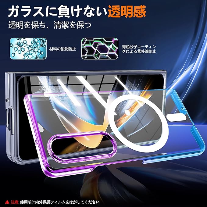 対応 Galaxy Z Fold 7 用 ケース クリア Magnetic 対応 薄型 グラデーション色 軽量 tpu+PC 耐衝撃 スマホケース 透明 マグネット搭載 ワイヤレス充電対応 おしゃれ 黄変防止防塵一体型 人気 折り畳み ギャラクシー Z フォールド7 5G 用 携帯カバー パープルブルー MD-SXCX-04-08