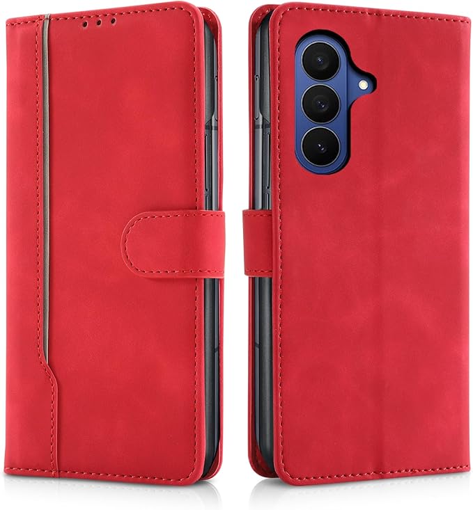 【CASAFUNY】For Galaxy Z Fold7 ケース 手帳型 耐衝撃 高質PUレザー カバー ギャラクシーZフォールド7 SC-56F SCG34 ケース 手帳型 おしゃれ スマホケース シンプル ビジネス風 携帯カバー お洒落 カードポケット マグネット開閉式 スタンド機能 軽量 スマホカバー(8インチ)レッド