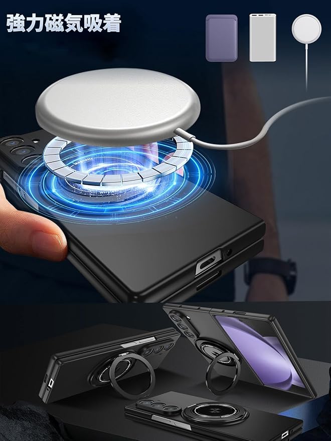 【折りたたみ式マグネットスタンド】スマホケースにマグネット式スタンド機能を搭載し、強力な磁力で安定感抜群!片手で簡単に開閉でき、好きな角度で固定可能。 動画視聴、ビデオ通話、オンライン会議など、ハンズフリーで快適に楽しめます。