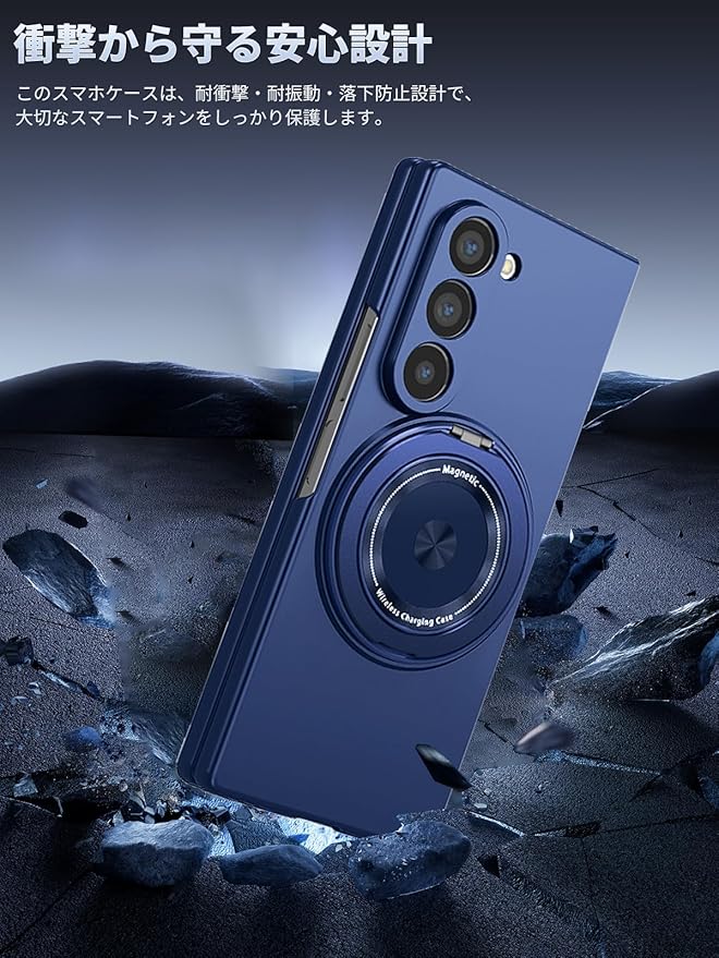 Samsung Galaxy Z Fold7 用 ケース 薄型 スマホケース さらさら 手触り SpinoArmor 指紋防止 擦り傷防止 耐衝撃カバー 滑り止め 傷防止 携帯便利 Samsung Galaxy Z Fold7 対応(ブルー)