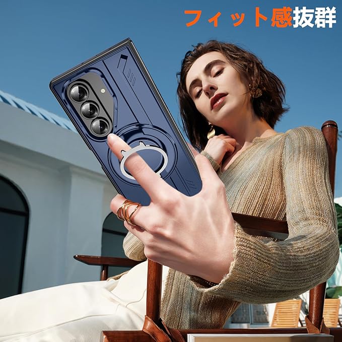 【360度回転式リング付き】 対応 Galaxy Z Fold7 ケース に一体式リングスタンド付きで、ブラケットは360 回転できます、垂直画面で小説を読むことができます、または、ケースを横置きにするとスタンド機能になり、両手を解放し、いつでもどこでもfacetime、ドラマや映画鑑賞などの娯楽番組を楽しむことができます;片手で携帯を操作でき、滑り止め、強奪、落下などのことを防げます