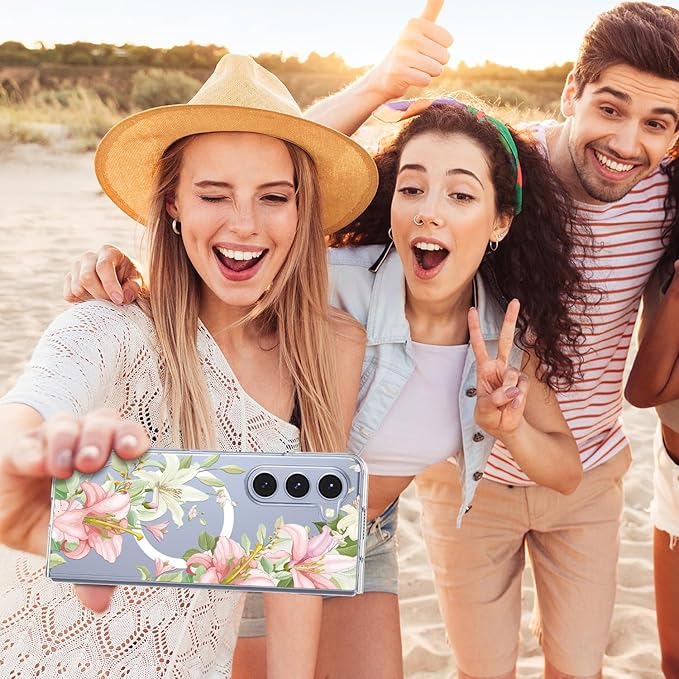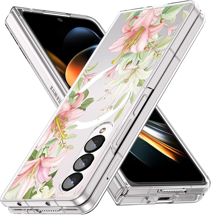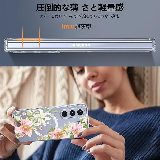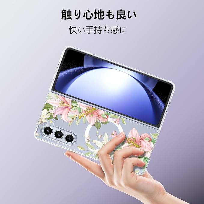 Galaxy Z Fold4 用 ケース マグネット搭載 クリア 耐衝撃 花柄 磁気カバー 可愛い PC 薄型 軽量 ワイヤレス充電対応 ギャラクシーZ フォールド4 5G SC-55C SCG16 用 スマホケース ハード おしゃれ 黄変なし 手触り良い シンプル 耐久 人気 保護ケース フラワー JMJP8-7