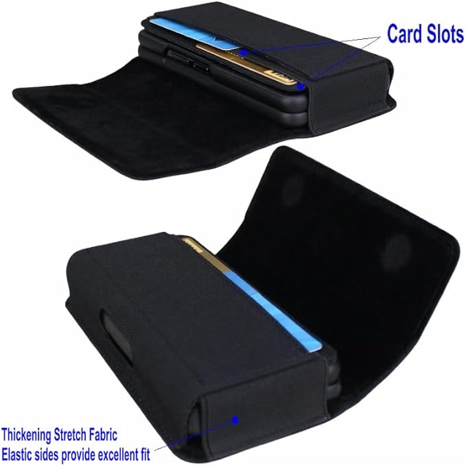 Aubaddy ナイロン携帯電話ホルスター ベルトクリップとベルトループ付き 携帯電話ベルトケースホルダーポーチ Samsung Galaxy Z Fold 3/4/5/6/7用 カードスロット内蔵 強力なマグネット開閉 ブラック