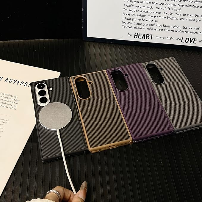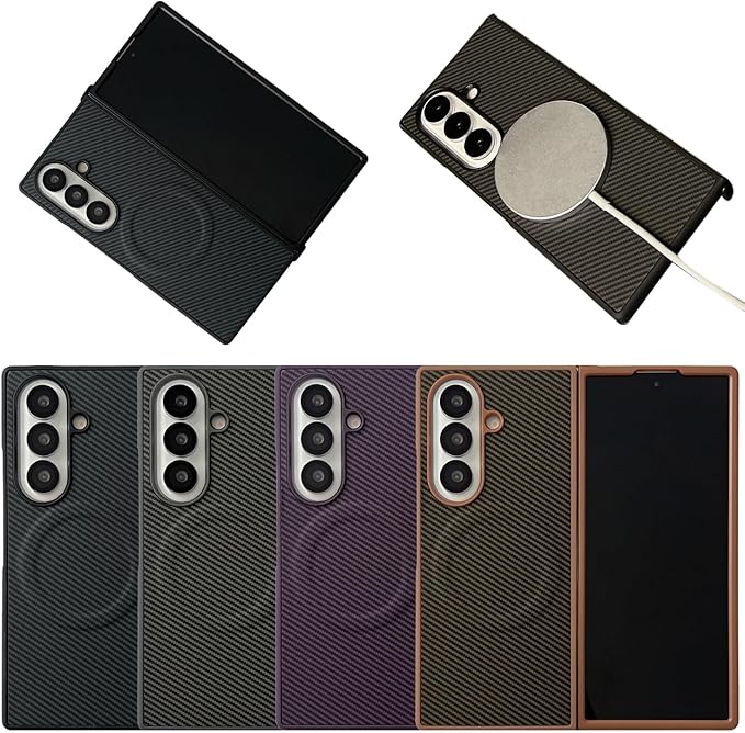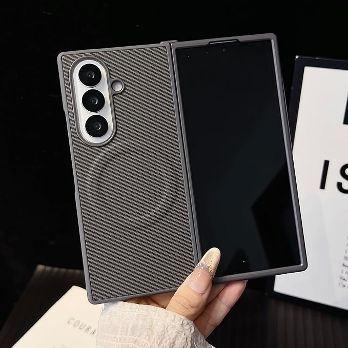 このスマホケースはGalaxy Z Fold7専用の折りたたみ式手帳型フルカバーです。PCと高級感あるカーボンPUレザーの複合素材を採用し、端末を360度全方位から堅牢に保護。ビジネスシーンに映えるシンプルでスタイリッシュなデザインと、超薄軽量構造による自然な装着感が特長です。複合構造が衝撃を効果的に吸収し、カメラと画面は専用ガードで保護。背面に内蔵された強力磁気コイルでワイヤレス充電も可能。端末にぴったりフィットする精密設計で、操作性と利便性を両立します。
