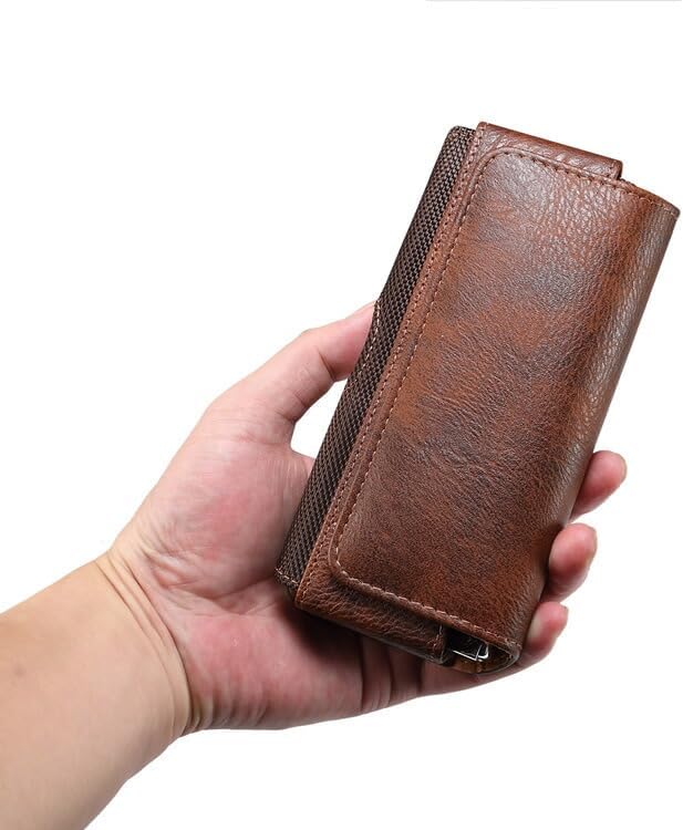 KOOLRIVER・For Galaxy Z Fold7/6/5/4 ケース カバー Z TriFold 折りたたみ型 横仕様 ベルトループ ホルダー ホルスター 多機種対応 PUレザー カード収納 シンプル スマホケース(ブラウン)