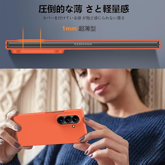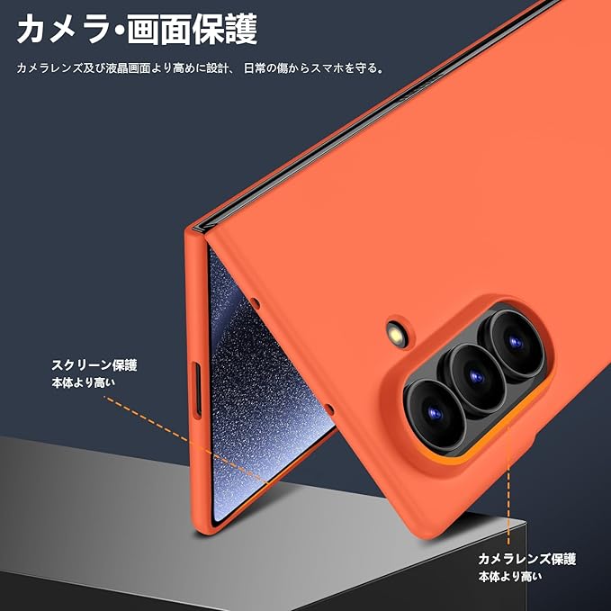 ケース 対応 Galaxy Z Fold7 用の ケース 耐衝撃 PC クリア 薄型 軽量 マット感 ワイアレス充電 ハード 対応 ギャラクシーZ フォールド7 用のカバー 衝撃吸収 画面レンズ保護 黄変防止 擦り傷防止 シンプル 人気 おしゃれ 携帯カバー オレンジ JMJP5-93
