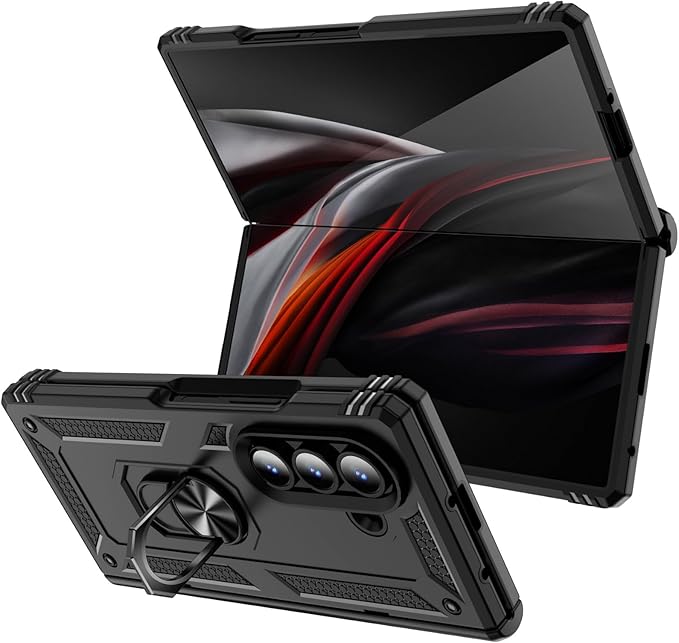 EDu Galaxy Z Fold7 ケース ギャラクシーゼットフォールド7ケース リング付き スタンド機能 ヒンジ保護 耐衝撃 純正 傷防止 レンズ保護 落下防止 ブラック