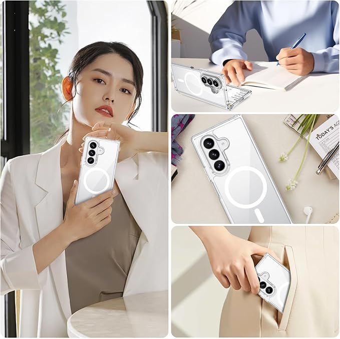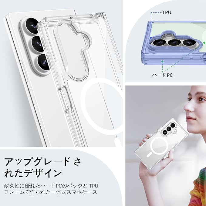 DUEDUE Galaxy Z Fold 7 ケース MagSafe対応 マグネット搭載 Samsung Galaxy Z Fold 7 ケース 折りたたみ 一体式 透明のデザイン レンズ保護 指紋防止 マット感 クリア 薄型 ワイヤレス充電 耐衝撃
