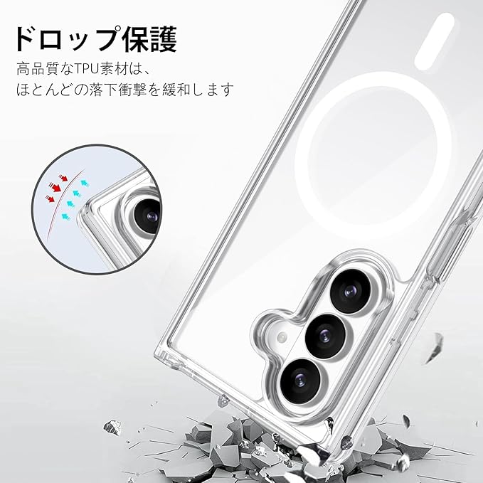 【一体型構造】衝撃から端末を守る最適な保護性能で、TPUの柔軟性とPCの剛性を組み合わせたハイブリッド構造が、あらゆる角度からの衝撃を吸収。特にヒンジ周りを強化した設計で、落下時のダメージを最小限に抑えます。0.8mmの薄さながら、軍用レベルに準拠した耐衝撃性を実現しています。