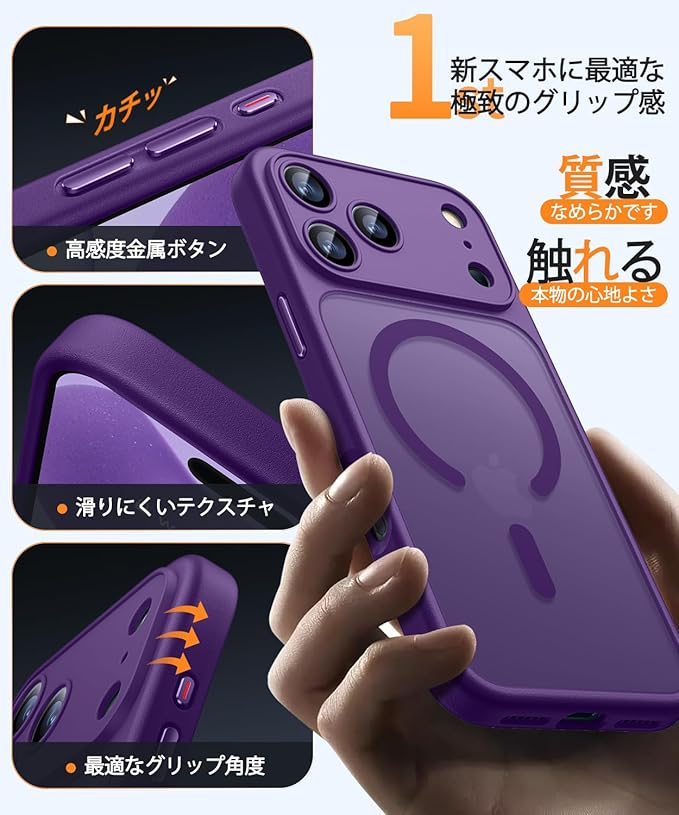 【マット質感 & 滑らかな触感】柔軟な TPU フレームとハード PC 背面にマットコーティングを施し、高級感のある触感を実現。滑りにくく、指紋がつきにくく、清掃も簡単。ワイヤレス充電に対応し、さまざまなカラーでスタイルに合わせて選択可能です
