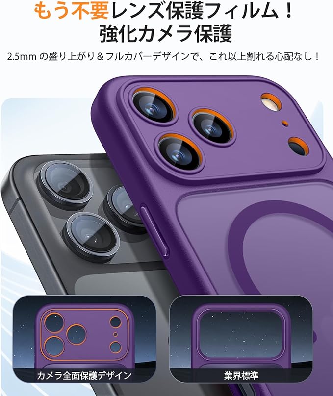 CANSHN iPhone 17 Pro Max 用 ケース 【Magsafe対応・カメラ全面保護】 耐衝撃 黄ばみなし マグネット搭載 半透明マット あいふぉん 17 Pro Max 用 ケース- ディープパープル