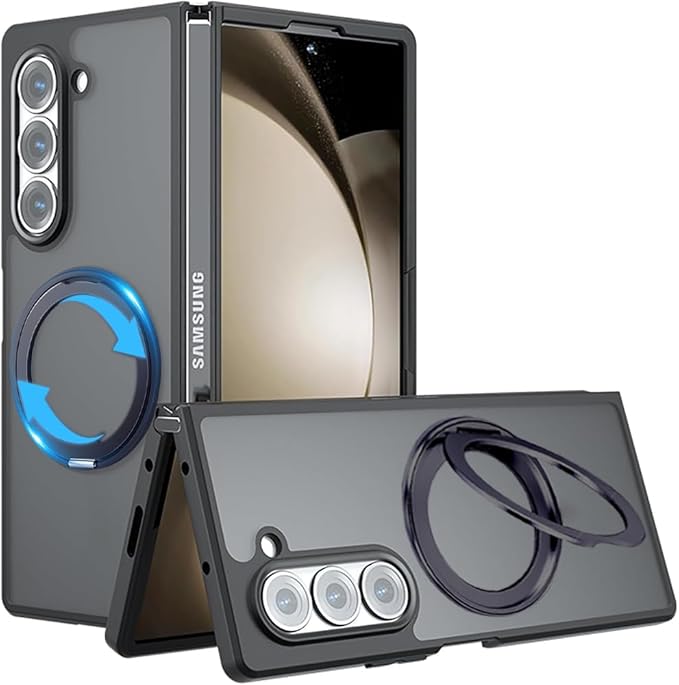 【360 回転スタンド】for Galaxy Z Fold 7 ケースMagSafe対応 SC-56F SCG34 ケース マグネット搭載 スタンド機能360 回転可能【横縦両立/角度自由調整】 カバー 純正 マット感 指紋防止 耐衝撃 車載ホルダー対応 QIワイアレス充電 (ギャラクシー Zフォールド7ブラック)