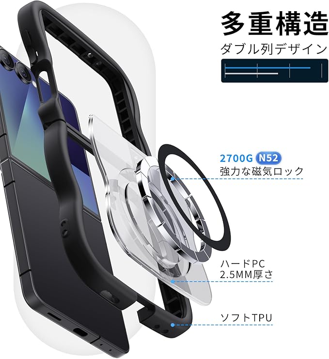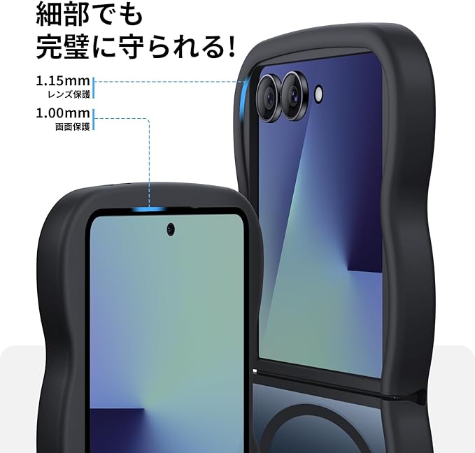 Galaxy Z Flip7 用 ケース 耐衝撃 米軍MIL規格 半透明 波形 ワイヤレス充電対応 指紋防止 黄ばみ防止 滑り止め ギャラクシー Galaxy Z Flip7 用 カバー (ブラック)N523-zflip7-01