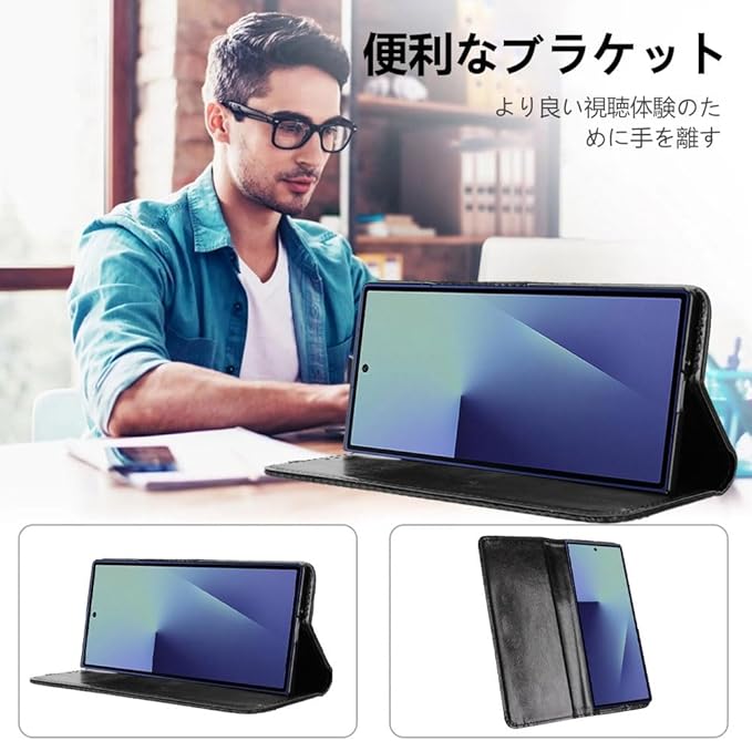 【商品の特性】: 横置きスタンド機能が付いて、好きな角度で動画鑑賞や読書などを楽しめます、財布型ケースとして、名刺やお札などを入れるカードポケットがつき、日常生活に便利です。高級PUレザー カバー カードポケット 手作り スタンド機能付き 全面保護 マグネット 吸着