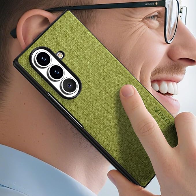 Aioria 互換性 ケース for Samsung Galaxy Z Fold 7 Fold7 5G 生地パターンレザー高級に保護純色スマホケース (Green, Z Fold 7)