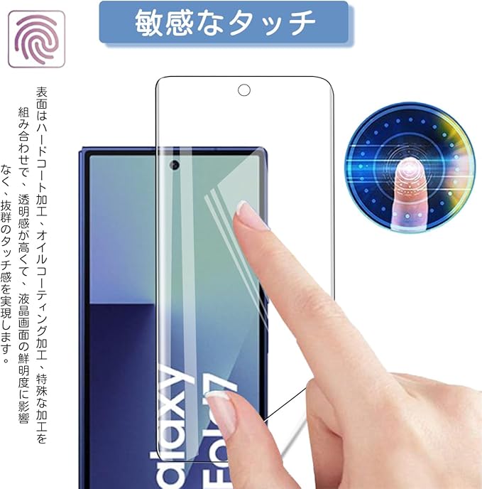 【タッチ感度抜群】触り心地がサラサラで指滑りが良くなるため、スワイプ操作がスムーズにできます。保護フィルムは感度が高く、指紋認証に対応できます。見た目にも美しく、操作上の指の引っかかりを防ぎ、ケースとの相性も抜群です。