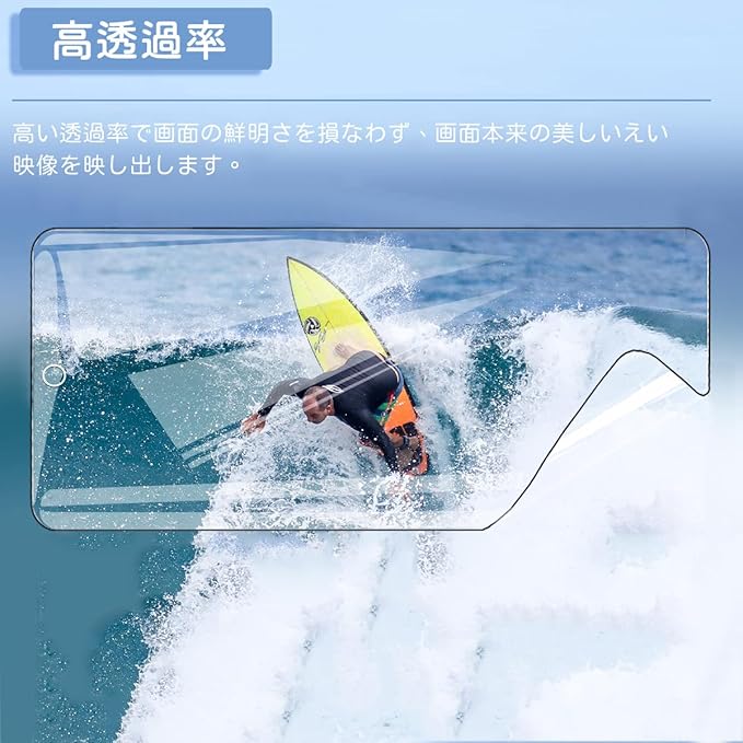 【高い光通過率】改良された高透過率のフィルムで、何も貼っていないような感覚で液晶画面の美しさをお楽しみいただけます。フィルムを貼っていても画面の精細さを損ないません。画面上の操作も違和感なくスムーズに行えます。